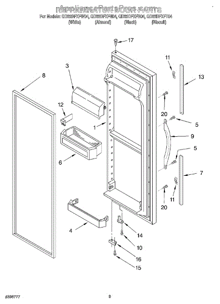 Parts for Whirlpool GD22DFXFT04: 07 - Refrigerator Door Parts
