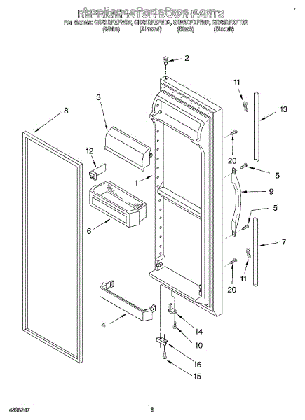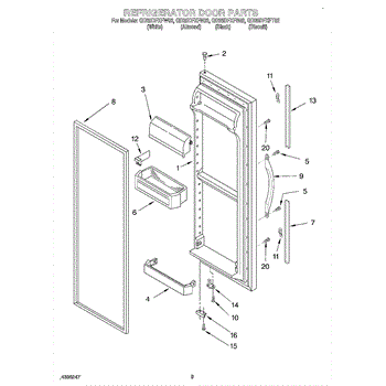 Parts for Whirlpool GD25DFXFW02: 06 - Refrigerator Door Parts