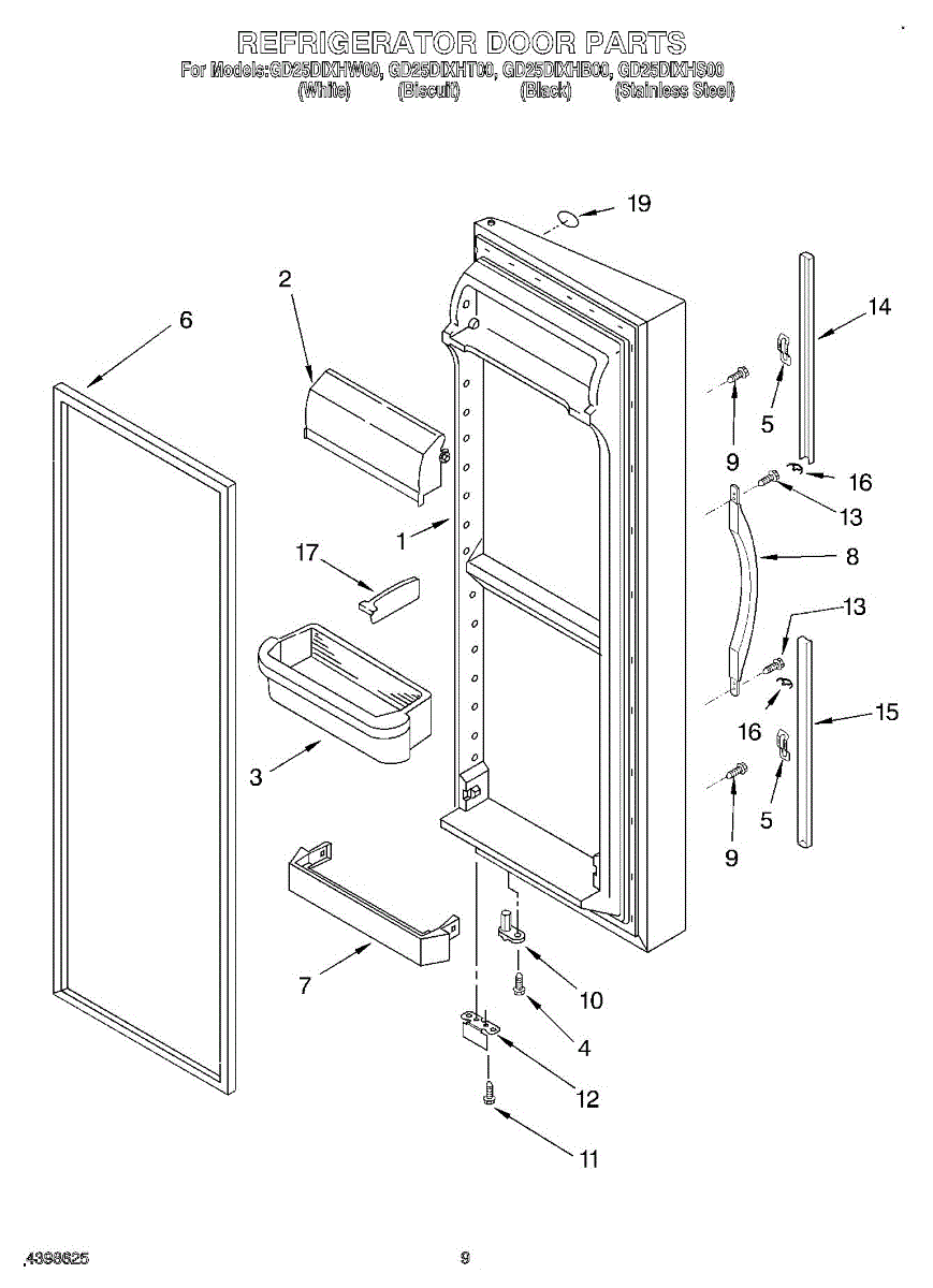Parts for Whirlpool GD25DIXHB00: 06 - Refrigerator Door Parts