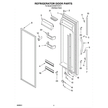 The Compartment Door is an OEM component for Whirlpool and Kenmore built-in refrigerator models. It provides access to organized storage in the fridge's fresh food compartment. The compartment door measures approximately 15” long by 6” wide.