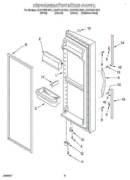Parts for Whirlpool GD27DIXHT01: 06 - Refrigerator Door Parts