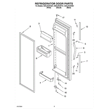 Parts for Whirlpool GD5LHGXKB01: 06 - Refrigerator Door Parts