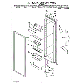 Parts for Whirlpool GD5NVAXSQ03: 06 - Refrigerator Door Parts