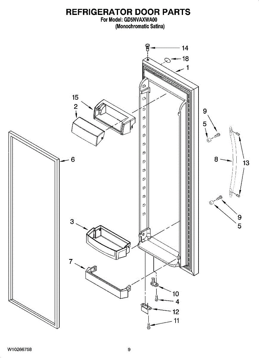 The Door Shelf is an OEM part for Whirlpool refrigerators. It provides additional storage space within the refrigerator door, allowing for the organization of smaller items like condiments, jars, and bottles.