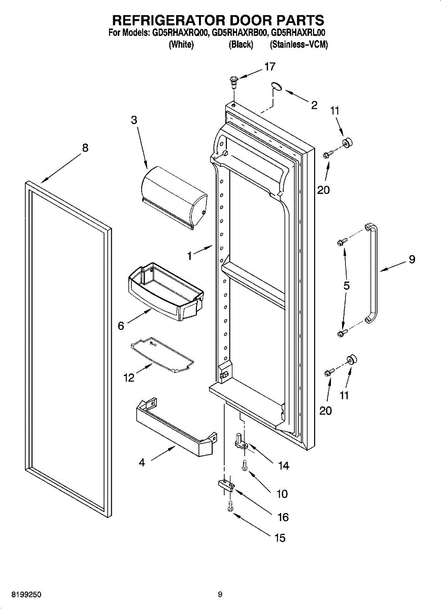 The Refrigerator Door Gasket (BLK) is an OEM part for Whirlpool refrigerators. This black gasket is designed to create a tight seal around the refrigerator door, preventing warm air from entering and cool air from escaping. The gasket is black in color and measures approximately 19 ¼” wide by 62" tall.