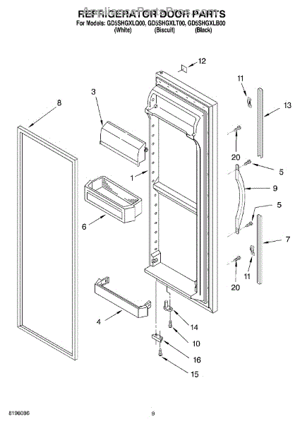 Parts for Whirlpool GD5SHGXLT00: 06 - Refrigerator Door Parts