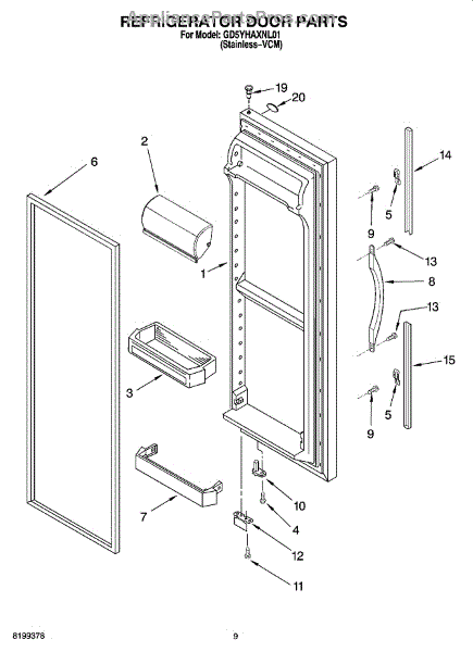 Parts for Whirlpool GD5YHAXNL01: 06 - Refrigerator Door Parts