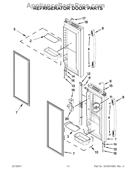 The Door Gasket is an OEM replacement part for Whirlpool side-by-side refrigerators. This black gasket provides a critical moisture and air seal around the refrigerator and freezer door openings. Causes of failure may involve cracking or degradation from mechanical stresses or chemical exposure over years of use. Temperature fluctuations can also damage sealing integrity. Symptoms of a defective door gasket include:
