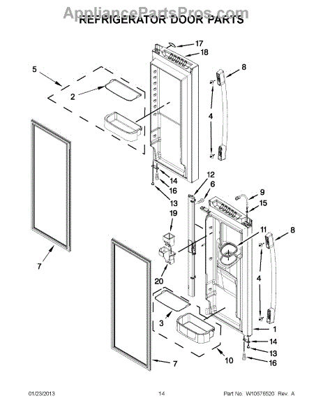 This refrigerator door flipper mullion is the folding center rail that bridges the gap between the doors. It helps complete the door seal and reduces condensation along the center for better temperature retention.