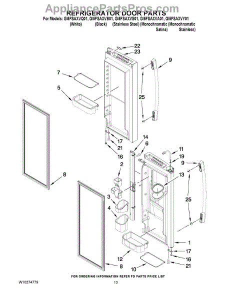The Door Gasket is an OEM replacement part for Whirlpool side-by-side refrigerators. This black gasket provides a critical moisture and air seal around the refrigerator and freezer door openings. Causes of failure may involve cracking or degradation from mechanical stresses or chemical exposure over years of use. Temperature fluctuations can also damage sealing integrity. Symptoms of a defective door gasket include: