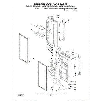The Door Gasket is an OEM replacement part for Whirlpool side-by-side refrigerators. This black gasket provides a critical moisture and air seal around the refrigerator and freezer door openings. Causes of failure may involve cracking or degradation from mechanical stresses or chemical exposure over years of use. Temperature fluctuations can also damage sealing integrity. Symptoms of a defective door gasket include:
