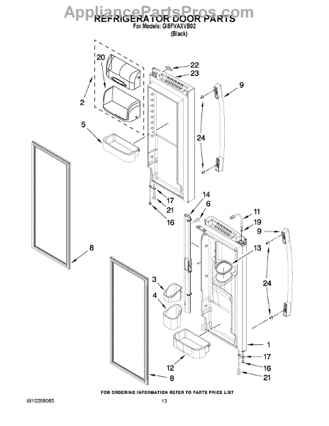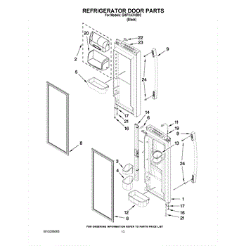 The Door Gasket is an OEM replacement part for Whirlpool side-by-side refrigerators. This black gasket provides a critical moisture and air seal around the refrigerator and freezer door openings. Causes of failure may involve cracking or degradation from mechanical stresses or chemical exposure over years of use. Temperature fluctuations can also damage sealing integrity. Symptoms of a defective door gasket include: