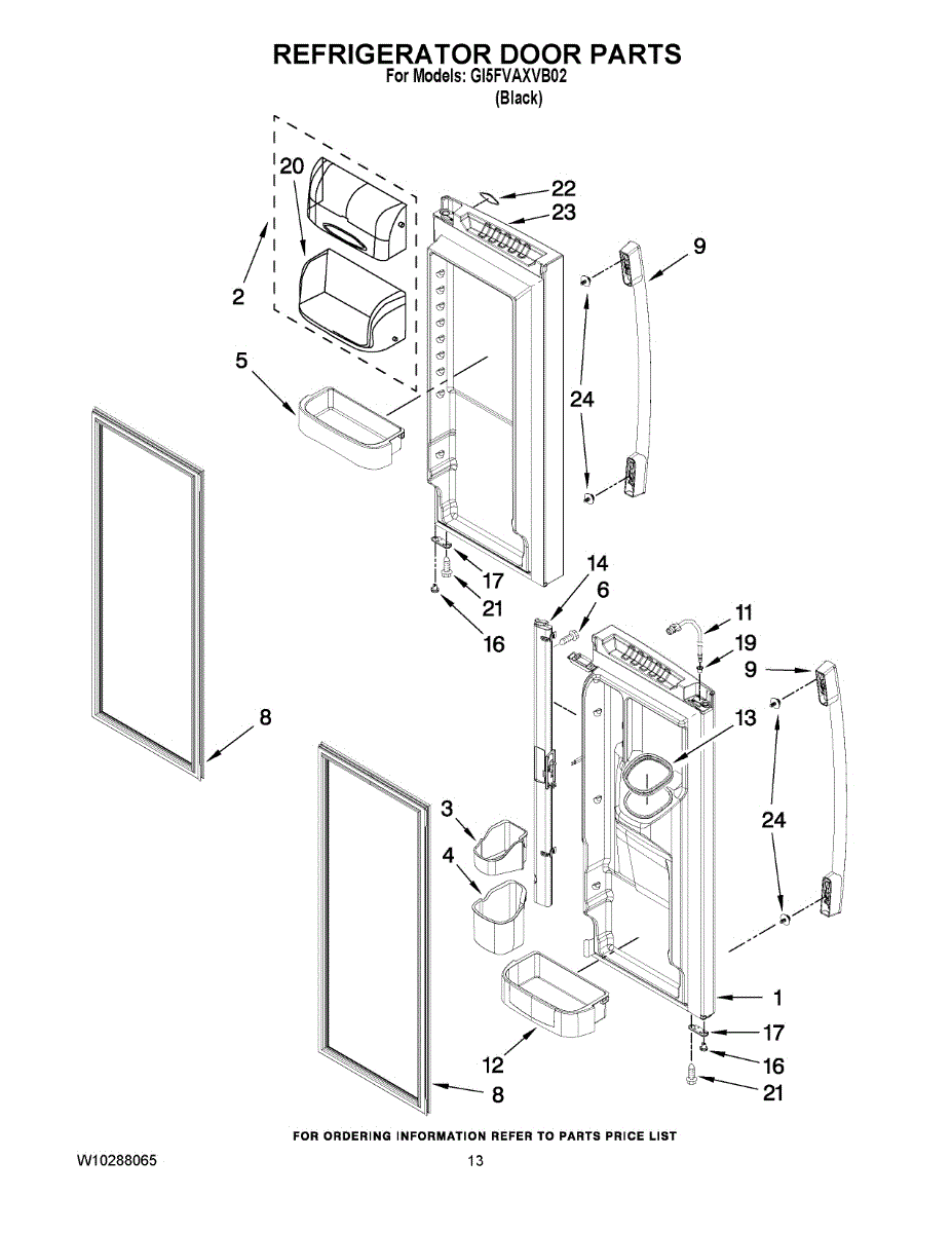 Seals refrigerator door to prevent air leaks and maintain temperature. Replace when torn, cracked, or loose. Confirm fit with your model number.