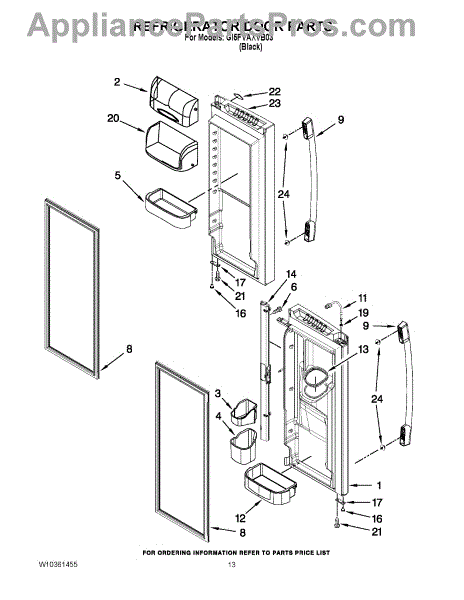 The Door Gasket is an OEM replacement part for Whirlpool side-by-side refrigerators. This black gasket provides a critical moisture and air seal around the refrigerator and freezer door openings. Causes of failure may involve cracking or degradation from mechanical stresses or chemical exposure over years of use. Temperature fluctuations can also damage sealing integrity. Symptoms of a defective door gasket include: