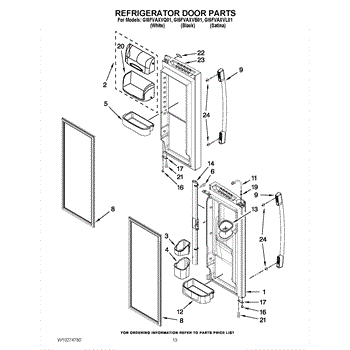 The Door Gasket is an OEM replacement part for Whirlpool side-by-side refrigerators. This black gasket provides a critical moisture and air seal around the refrigerator and freezer door openings. Causes of failure may involve cracking or degradation from mechanical stresses or chemical exposure over years of use. Temperature fluctuations can also damage sealing integrity. Symptoms of a defective door gasket include: