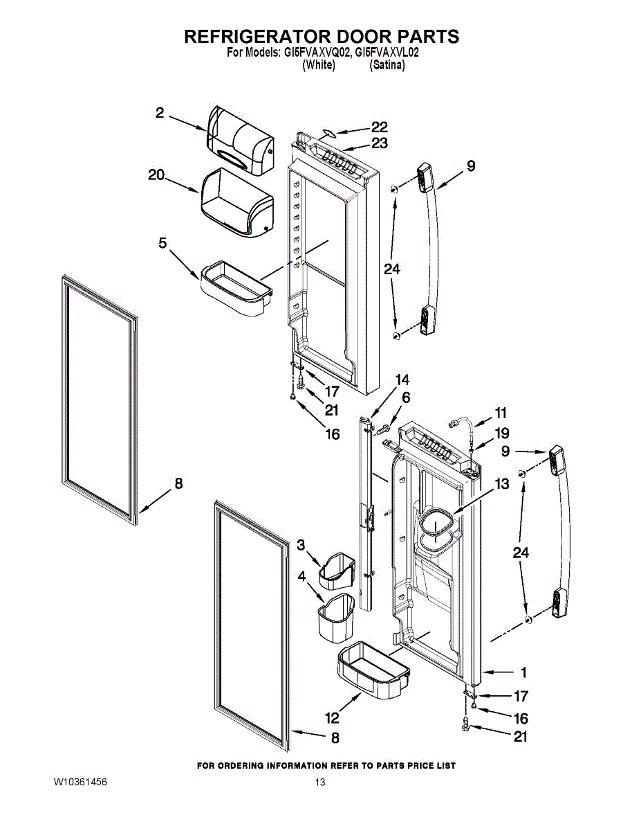 The Door Gasket is an OEM replacement part for Whirlpool side-by-side refrigerators. This black gasket provides a critical moisture and air seal around the refrigerator and freezer door openings. Causes of failure may involve cracking or degradation from mechanical stresses or chemical exposure over years of use. Temperature fluctuations can also damage sealing integrity. Symptoms of a defective door gasket include:
