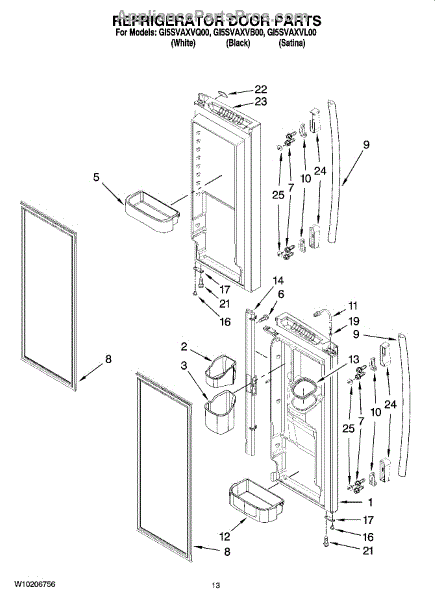 The Door Gasket is an OEM replacement part for Whirlpool side-by-side refrigerators. This black gasket provides a critical moisture and air seal around the refrigerator and freezer door openings. Causes of failure may involve cracking or degradation from mechanical stresses or chemical exposure over years of use. Temperature fluctuations can also damage sealing integrity. Symptoms of a defective door gasket include: