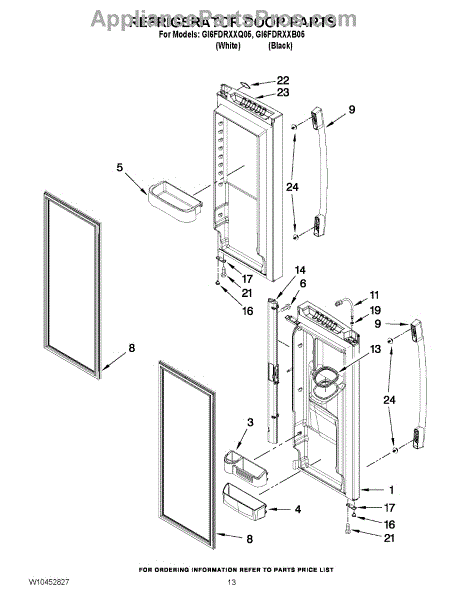 The Door Gasket is an OEM replacement part for Whirlpool side-by-side refrigerators. This black gasket provides a critical moisture and air seal around the refrigerator and freezer door openings. Causes of failure may involve cracking or degradation from mechanical stresses or chemical exposure over years of use. Temperature fluctuations can also damage sealing integrity. Symptoms of a defective door gasket include: