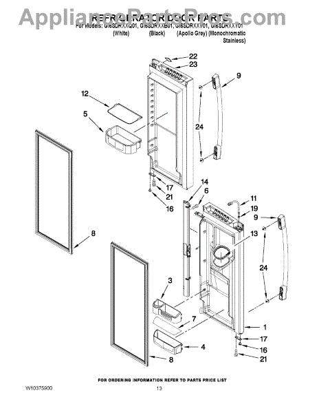 Parts for Whirlpool GI6SDRXXQ01: 07 - Refrigerator Door Parts