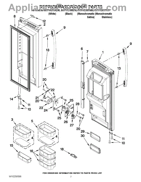 Parts for Whirlpool GI7FVCXWQ00: 04 - Refrigerator Door Parts