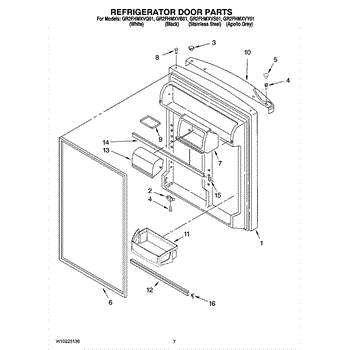 Parts for Whirlpool GR2FHMXVB01: 04 - Refrigerator Door Parts