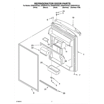 Parts for Whirlpool GR9SHKXKS03: 04 - Refrigerator Door Parts