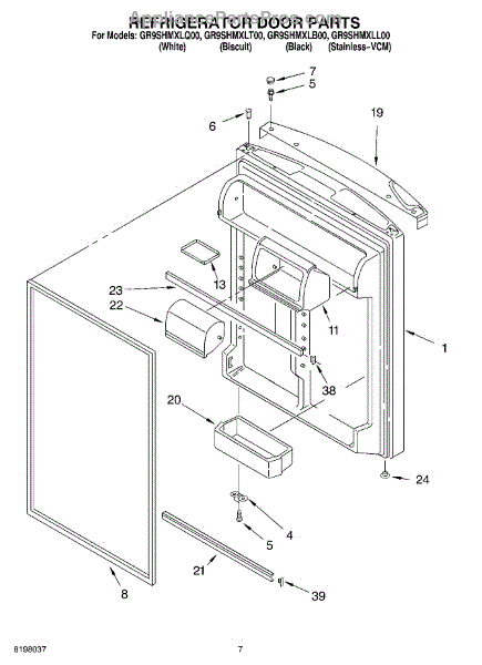 Parts for Whirlpool GR9SHMXLT00: 04 - Refrigerator Door Parts