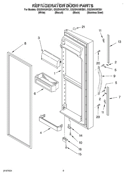 Parts for Whirlpool GS2SHAXKS01: 06 - Refrigerator Door Parts