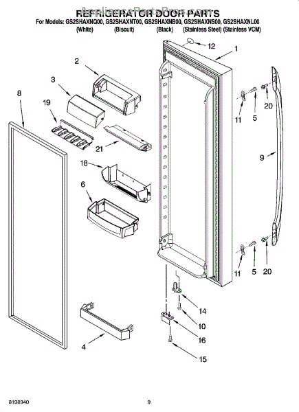 Parts for Whirlpool GS2SHAXNS00: 06 - Refrigerator Door Parts