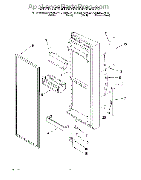 Parts for Whirlpool GS2SHGXKB01: 07 - Refrigerator Door Parts