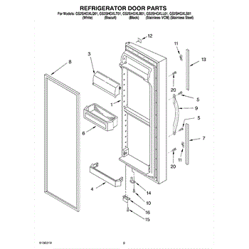 Parts for Whirlpool GS2SHGXLL01: 07 - Refrigerator Door Parts