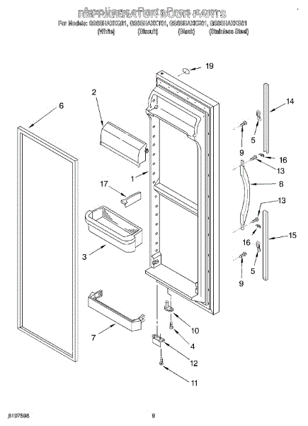 Parts for Whirlpool GS6SHAXKS01: 06 - Refrigerator Door Parts