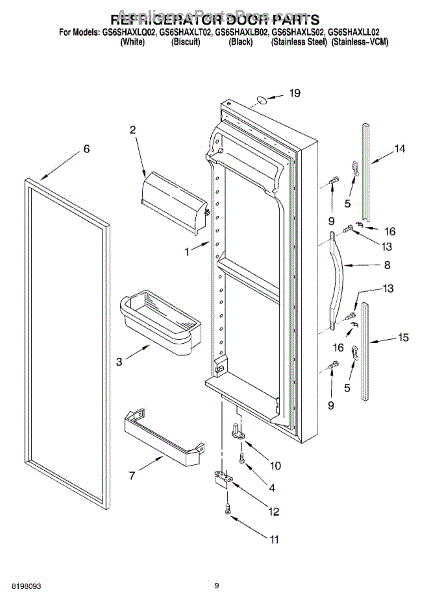 Parts for Whirlpool GS6SHAXLT02: 06 - Refrigerator Door Parts