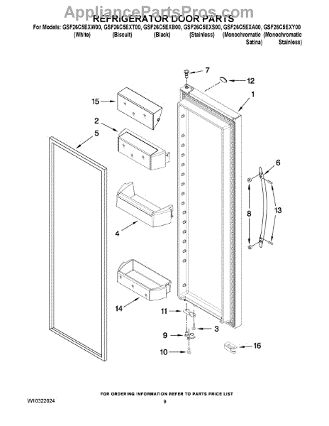 Parts for Whirlpool GSF26C5EXS00: 06 - Refrigerator Door Parts