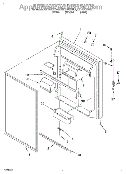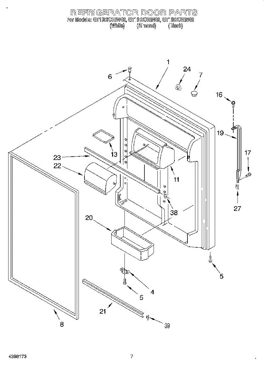 Parts for Whirlpool GT19DKXGN02: 04 - Refrigerator Door Parts