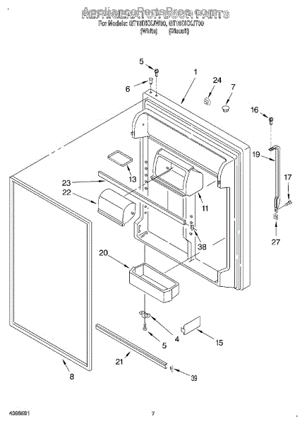 Parts for Whirlpool GT19DKXJT00: 04 - Refrigerator Door Parts