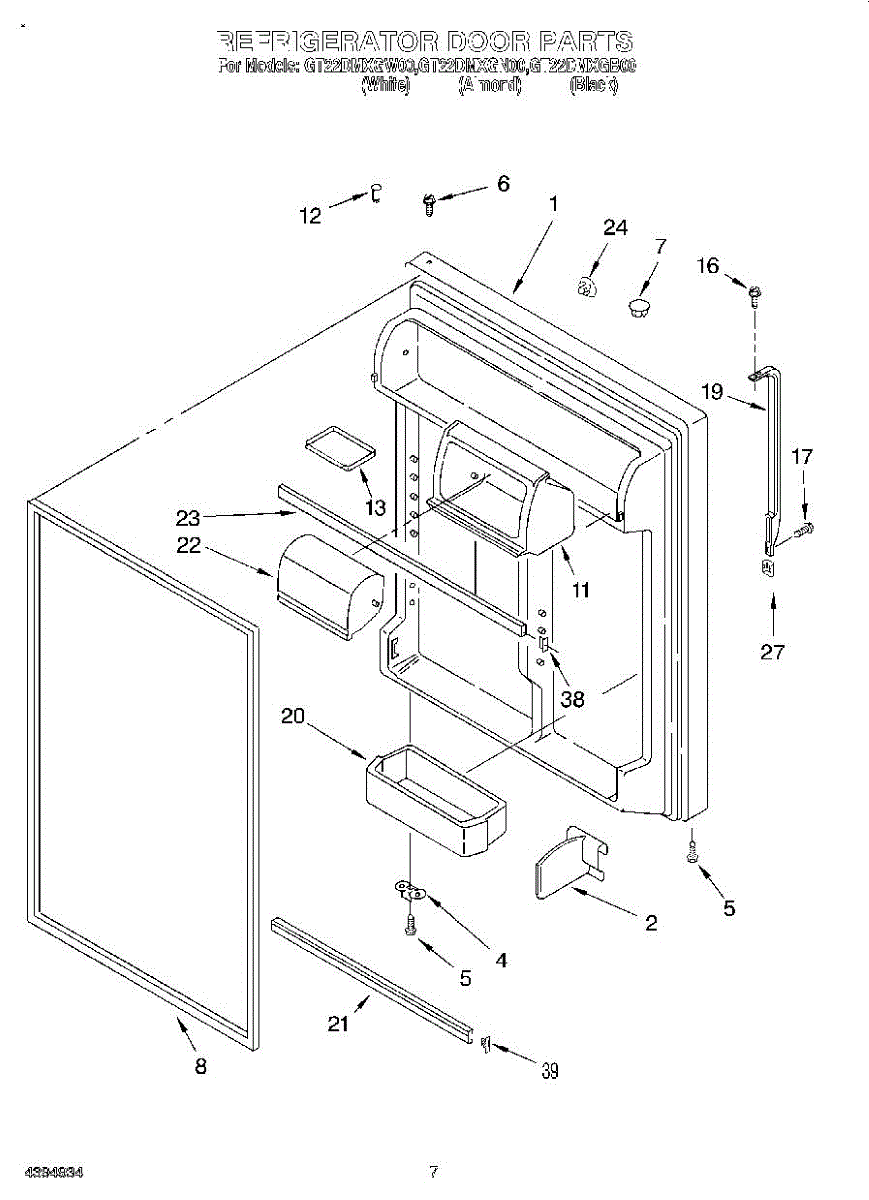 The Door Bin is an OEM replacement part for Whirlpool refrigerators. It is a removable plastic storage bin mounted inside the upper refrigerator door. This bin provides convenient access for eggs, condiments, and other small items with the door open.