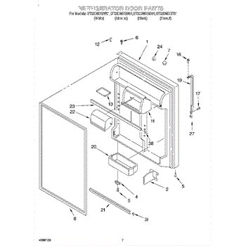 The Door Bin is an OEM replacement part for Whirlpool refrigerators. It is a removable plastic storage bin mounted inside the upper refrigerator door. This bin provides convenient access for eggs, condiments, and other small items with the door open.