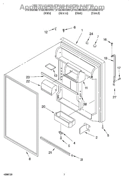 The Door Bin is an OEM replacement part for Whirlpool refrigerators. It is a removable plastic storage bin mounted inside the upper refrigerator door. This bin provides convenient access for eggs, condiments, and other small items with the door open.