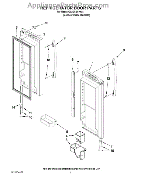 Parts for Whirlpool GX2SHBXVY05: 05 - Refrigerator Door Parts