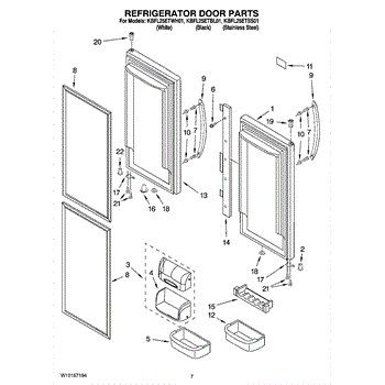 Parts for Kitchenaid KBFL25ETBL01: 04 - Refrigerator Door Parts