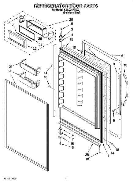 This shallow freezer door bin mounts on the inner door and restores organized storage for smaller items. Replace a cracked, loose, or missing bin to keep packages secure and easy to access.