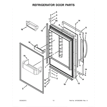 This control lever secures a refrigerator door shelf bin to the door frame so bins stay seated and stable during normal use. Replacing a broken or worn lever restores proper bin retention and reduces rattling or unexpected bin release. What it does