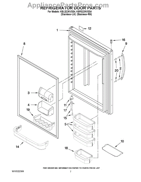 Parts for Kitchenaid KBLS22KVSS4: 05 - Refrigerator Door Parts
