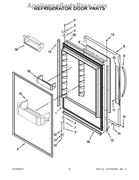 This control lever secures a refrigerator door shelf bin to the door frame so bins stay seated and stable during normal use. Replacing a broken or worn lever restores proper bin retention and reduces rattling or unexpected bin release. What it does