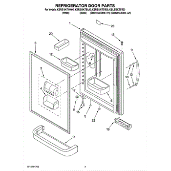 The Door Closure is an OEM replacement part for Whirlpool refrigerators. It is a small component that the door rides on that allows it to open and close properly. Causes of impaired operation involve age-related spring coil fatigue, dislodged or cracked plastic housing pieces, or confined door alignment stripping closure grooves. Symptoms of a faulty closure include: