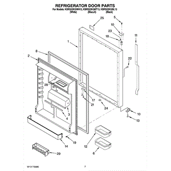Parts for Kitchenaid KBRS22KGWH13: 05 - Refrigerator Door Parts