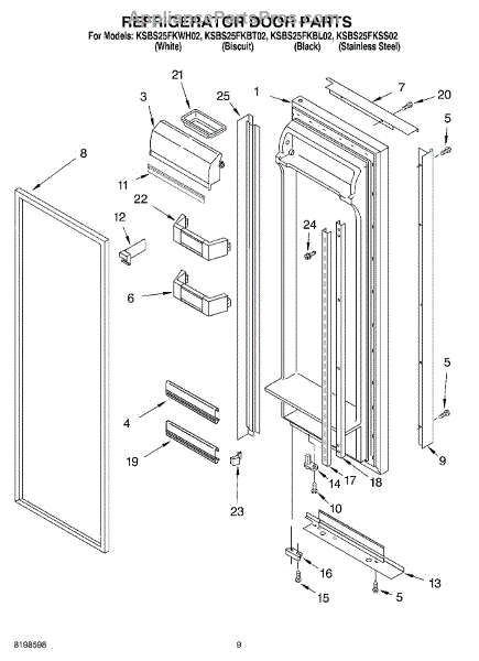 Parts for Kitchenaid KSBS25FKBT02: 06 - Refrigerator Door Parts