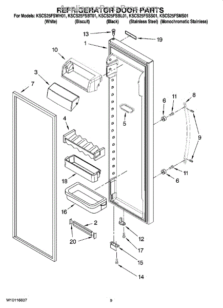 Parts for Kitchenaid KSCS25FSSS01: 06 - Refrigerator Door Parts