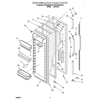 The Refrigerator Door Gasket is an OEM part for Whirlpool refrigerators. This gasket forms a seal around the refrigerator door, ensuring that cold air stays inside and warm air remains outside, maintaining the appliance's efficiency and keeping food fresh.